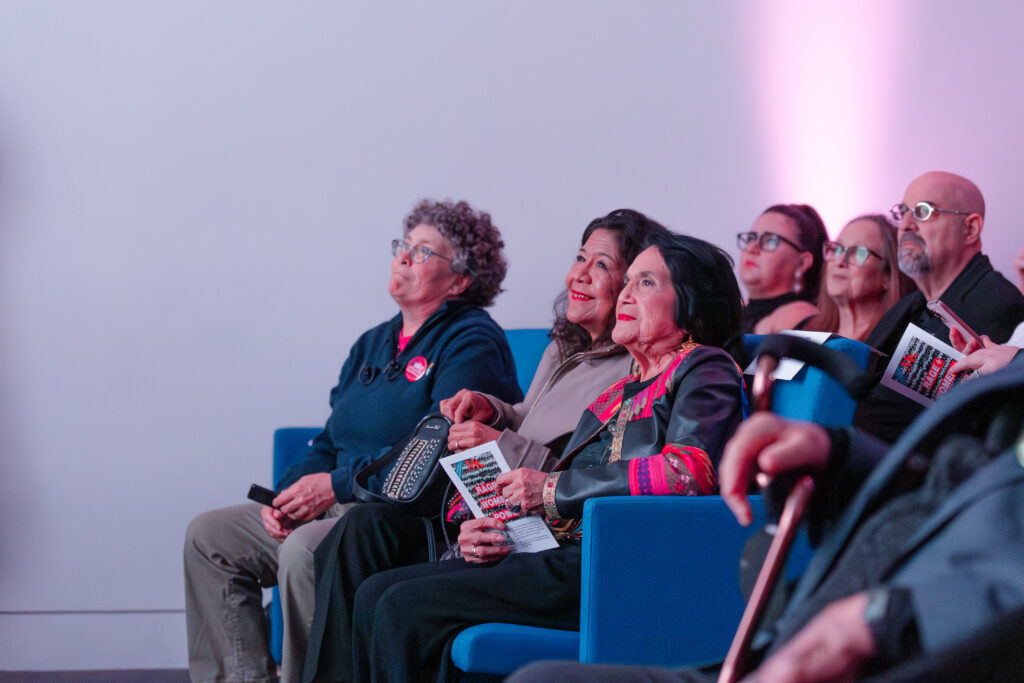But whether we have the vision that Skye talks about to live up—the story of this country is the story of two Americas, of a dual state. My law school classmate and boss in the White House, Barack Obama, speaks so eloquently of whether America can live up to the idea of America, of whether we can truly become America. I don’t think we’ll ever achieve that perfection. Whether we have the vision, and the determination and the energy to rebuild what so many things are broken, we’ll see. I am hopeful because of the extraordinary efforts, including the two women beside me, our wonderful playwright Bess, all of you, the Feminist Majority, everyone here, our hero, Dolores Huerta.