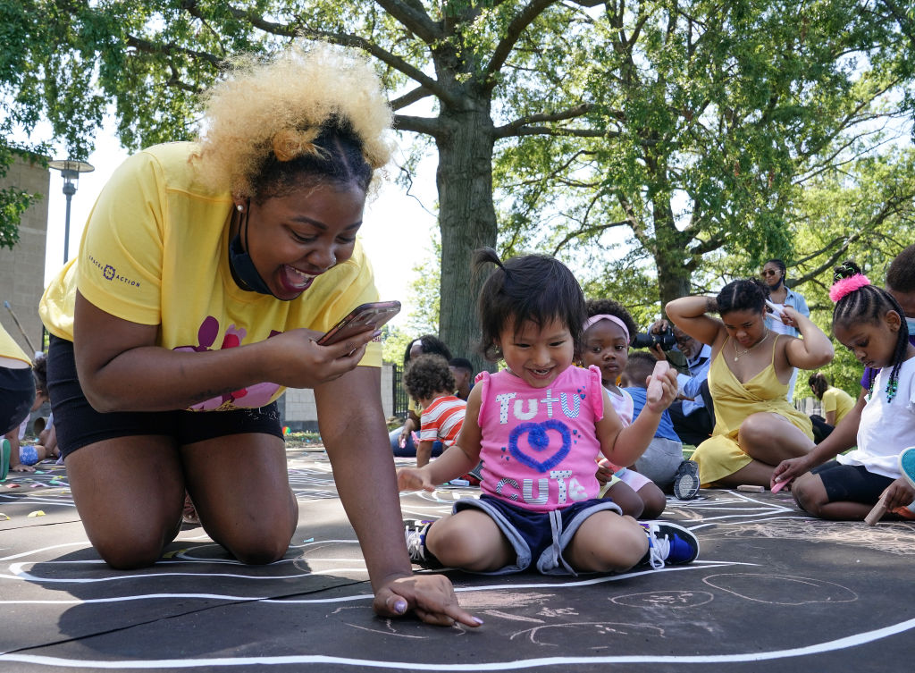 Children from the KU Kids Deanwood Childcare Center complete a mural celebrating the launch of the Child Tax Credit on July 14, 2021 at the KU Kids Deanwood Childcare Center in Washington, DC. (Photo by Jemal Countess/Getty Images for Community Change)