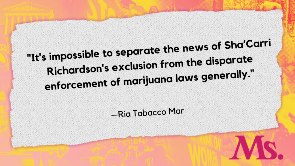 Well, it’s impossible to separate the news of Sha’Carri Richardson’s exclusion from the disparate enforcement of marijuana laws generally. And you know, Richardson came out, opened up to fans and explained, you know, she had smoked marijuana in the middle of what was really a heartbreaking moment.