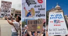 Marchers carried “We the People” signs and references to the U.S. Constitution, including: “The Constitution is not optional,” “Democracy not monarchy” and “No kings since 1776.” Signs and chants varied by region: In New York City, protesters dressed up as the Statue of Liberty; in Florida, signs said the Florida heat would melt ICE; in Texas, marchers called for Gov. Abbott and Sen. Cruz to stand up to the Trump administration’s abuses of power.