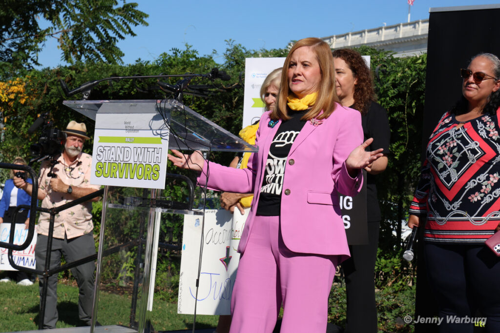 With support from World Without Exploitation, Liz Stein and more than 20 survivors led a powerful call on Capitol Hill for the release of the Epstein files and real accountability.