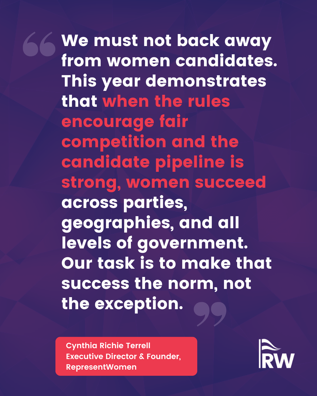 Their legacy is the throughline to our work: to build systems where women can run, win, serve and lead without needing extraordinary circumstances or extraordinary bravery just to participate. And in honoring them, we recommit ourselves to carrying that work forward.